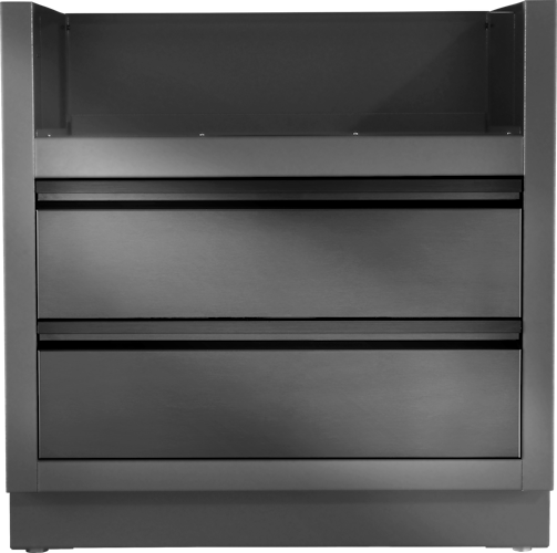 Speziell für die Einbau Prestige® 500 und Prestige® PRO 500 Gasgrillaufsätze gefertigt, bietet dieses matt schwarze, pulverbeschichtete, galvanisierte Gehäuse erhöhte Haltbarkeit. Zwei Schubladen sind auf Soft-Close-Schienen montiert, um einen reibungslosen Zugriff auf den Stauraum unter dem Grill zu ermöglichen.
