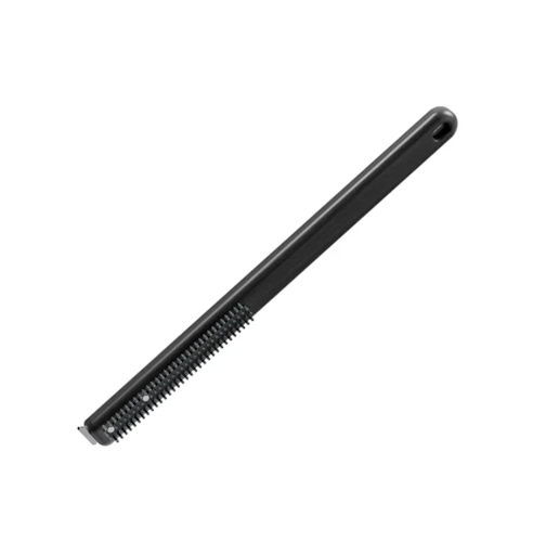 Eine Seite ist mit Edelstahlborsten ausgestattet. Die andere ist ein robuster Edelstahlschaber.