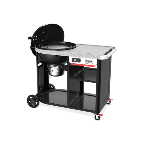 Mit dem Rapidfire Assist-Modus, der die Holzkohle schürt, nachdem du zuvor einen Anzünder entfacht hast, kannst du noch schneller starten und gleichzeitig vorheizen. Über die Weber Connect® App steuerst du den Grill von deinem Smartphone aus. Dieser Grill ist in einen hochwertigen Rollwagen mit zwei Regalfächern, einem Weber Works Seitentisch, der für XL Drop-In-Zubehör passt, und einer seitlichen Weber Works Schiene, in die Snap-On-Zubehör passt, eingebaut.*